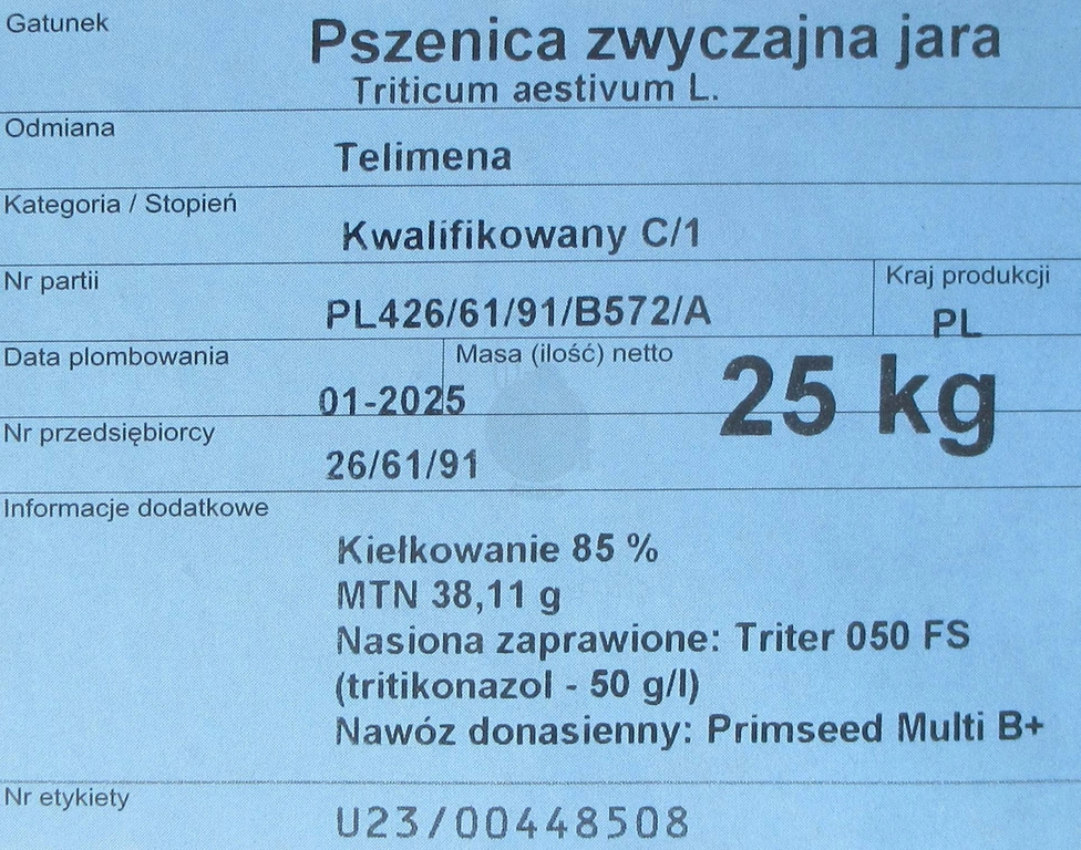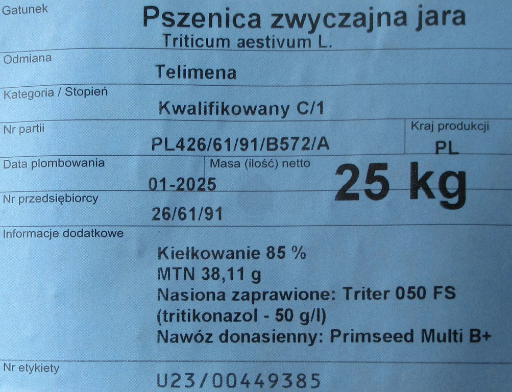 - Nowa, bardzo wczesna odmiana pszenicy jarej.- Charakteryzuje się grubym ziarnem o bardzo dobrych parametrach jakościowych, grupa E/A (MTZ ok. 50 g – na poziomie pszenic ozimych).