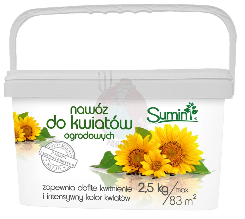 - Nawóz Sumin do kwiatów ogrodowych wspomaga obfite kwitnienie i zdrowy wzrost. Zawiera fosfor, potas, magnez i mikroelementy. Do roślin jednorocznych i bylin. Granulowana forma, łatwe dawkowanie.