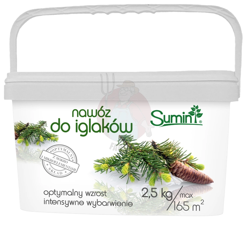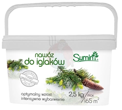 Wieloskładnikowy nawóz granulowany marki Sumin został opracowany specjalnie z myślą o potrzebach roślin iglastych. Dzięki starannie dobranym proporcjom makro- i mikroskładników pokarmowych zapewnia iglakom intensywną barwę igieł, prawidłowy pokrój i zdrowy rozwój przez cały sezon. Obecność łatwo przyswajalnych form azotu, fosforu i magnezu pozwala na rozłożone w czasie, ale skuteczne działanie nawozu – bez ryzyka przenawożenia.