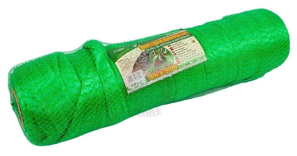 - Siatka została wykonana z polietylenu o małej gęstości. Dzięki temu nie obciąża nadmiernie gałęzi drzew i krzewów. Siatka ma za zadanie chronić owoce na drzewach i krzewach przed ptakami.
