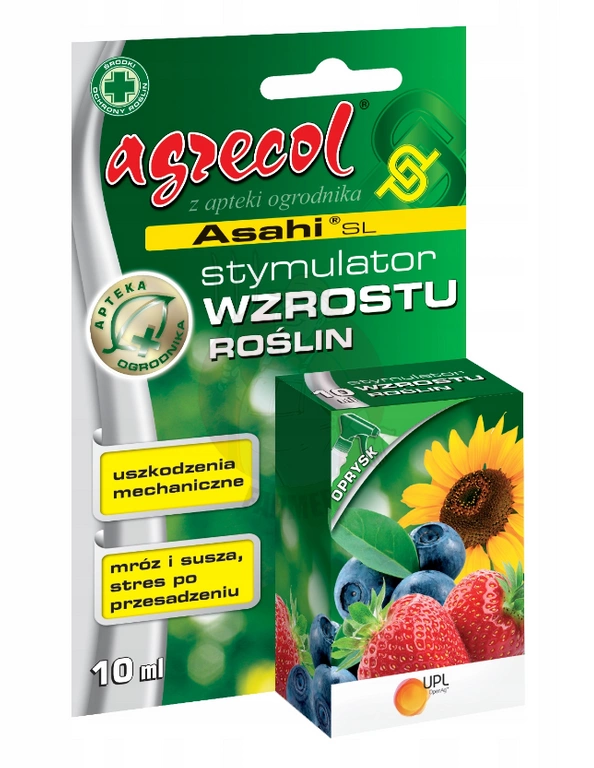 ASAHI SL jest regulatorem wzrostu, w formie cieczy do rozcieńczania wodą. Środek Asahi SL ma wpływ na wyższe plonowanie oraz polepszenie jakości plonów. Zastosowanie środka jest wskazane w warunkach stresowych, niesprzyjających wzrostowi roślin np. susza, przymrozki i po posadzeniu lub w przypadku uszkodzenia roślin np. środkami ochrony roślin lub nawozami.