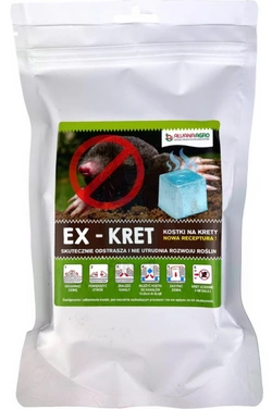 - Środek do odstraszania kretów i nornic. Stosować go można na lotniskach, obiektach sportowych, terenach zielonych, trawnikach, wałach, nasypach, działkach oraz terenach uprawnych, wszędzie tam, gdzie pojawią się szkodniki w postaci kretów i nornic.