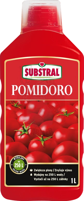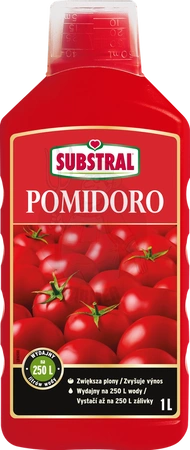 Nawóz Substral w płynie. Specjalistyczny nawóz do pomidorów. Specjalnie dopasowana mieszanka składników pokarmowych NPK zwiększa plony wysokiej jakości pomidorów o pełnym naturalnym smaku. Można również stosować do upraw słodkiej papryki. Wysokowydajny produkt w formie koncentratu. Prosty w użyciu, łączy nawożenie z podlewaniem.