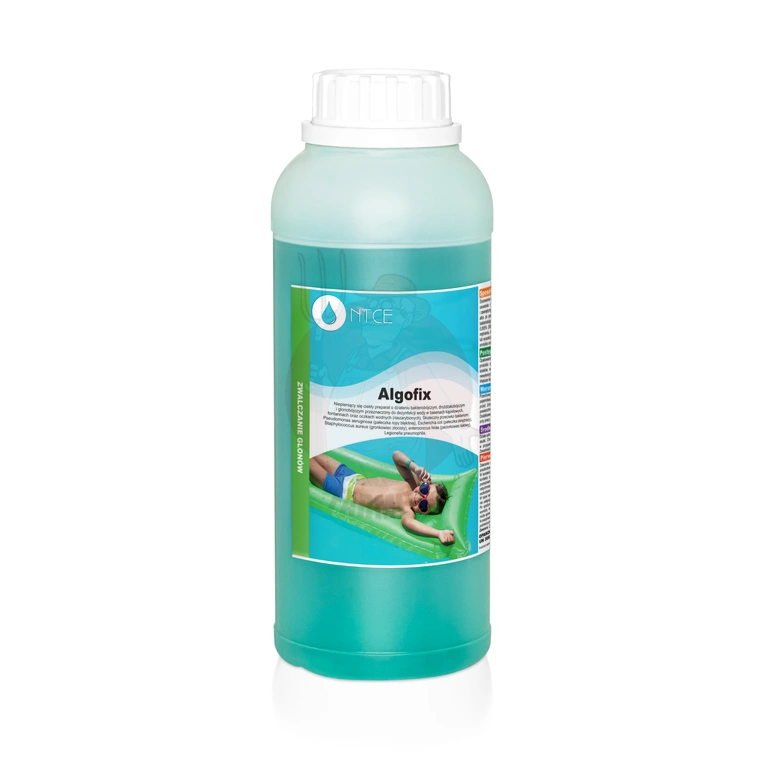 Produkt przeznaczony jest do dezynfekcji oraz usuwania i zapobiegania rozwojowi glonów w basenach kąpielowych zarówno wewnętrznych jak i zewnętrznych. Produkt ALGOFIX dozować bezpośrednio do basenu wieczorem, po zakończeniu kąpieli albo za pomocą automatycznych układów dozujących.Produkt wykazuje działanie bakteriobójcze i drożdżakobójcze.