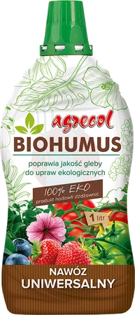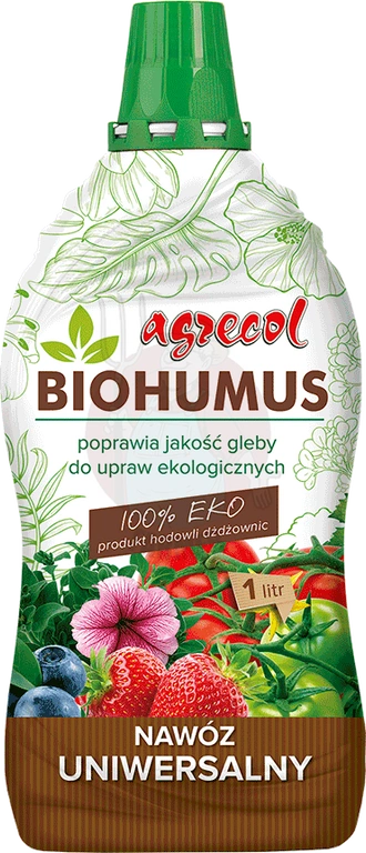 • Płynny nawóz organiczny. Przeznaczony do nawożenia wszelkich roślin ozdobnych uprawianych w domu, na balkonie, na tarasie i w ogrodzie. Nawóz powstaje w wyniku przetworzenia substancji organicznej przez dżdżownice kalifornijskie.
