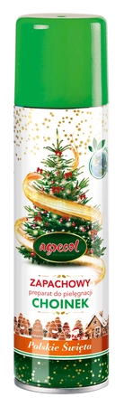 Nowoczesny preparat w aerozolu przeznaczony do pielęgnacji choinek ciętych. Kompozycja zapachowa nadaje wyjątkowy charakter i pozostawia przyjemny zapach w pomieszczeniu. Pokrycie igieł choinki cienką warstewką wosków pozwala na stopniowe uwalnianie się zapachu. Aerozol uwydatnia barwę igieł zapewniając zdrowy wygląd i intensywne zabarwienie.