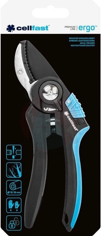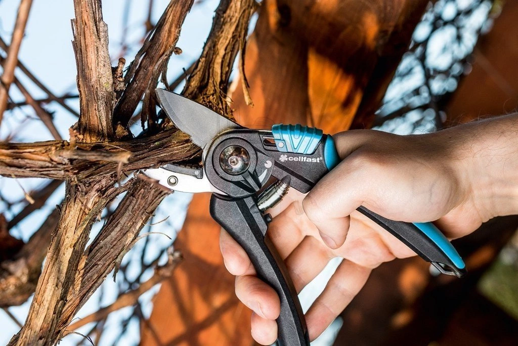 - ergonomiczny, jednoręczny sekator kowadełkowy z regulacją, która pozwala na dopasowanie rozwarcia do średnicy gałęzi jak i do dłoni użytkownika