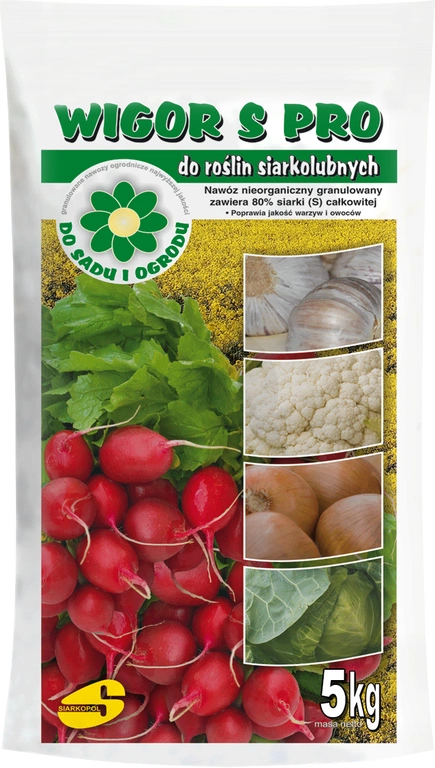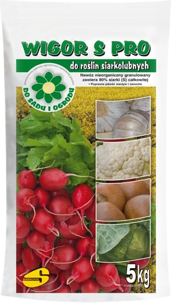 - Nawóz „Wigor S Pro” przeznaczony jest do nawożenia gleb wskazujących niedobór siarki, również w celu regulacji kwasowości gleby i do nawożenia roślin siarkolubnych.