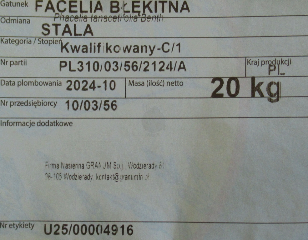 Facelia błękitna Stala to jednoroczna roślina o krótkim okresie wegetacyjnym wynoszącym 90–110 dni, w zależności od warunków pogodowych. Odmiana ta charakteryzuje się dobrym plonowaniem, wysoką wartością miododajną oraz wszechstronnym zastosowaniem w rolnictwie, zarówno jako roślina paszowa, poplonowa, jak i fitosanitarna. Jest również ceniona za szybki wzrost, odporność na choroby oraz zdolność do ograniczania występowania mątwika burakowego w glebie.