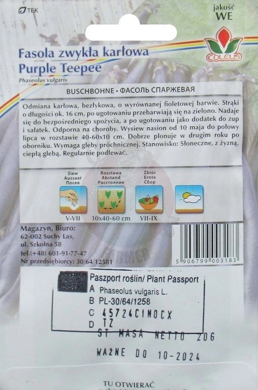 - Odmiana karłowa, bez łykowa, o wyrównanej fioletowej barwie. Strąki o długości ok. 16cm po ugotowaniu przebarwiają się na zielono. Nadaje się do bezpośredniego spożycia, a po ugotowaniu jako dodatek do zup i sałatek.