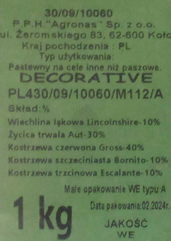 Norma wysiewu mieszanki VIP dekoracyjnej
