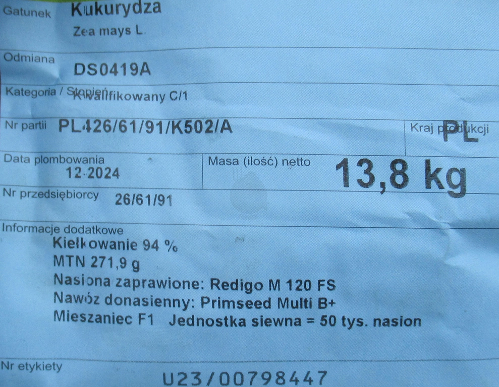 - Ziarno: Flint/Dent