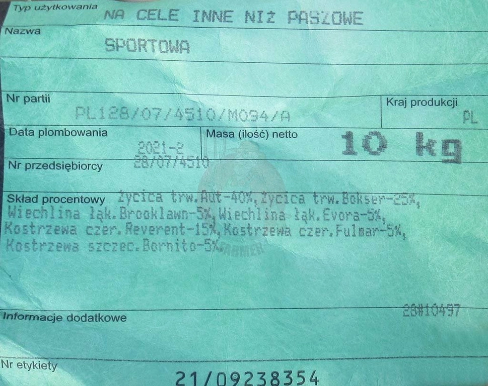 - Mieszanka przeznaczona do intensywnego użytkowania. Ciemnozielona, gęsta darń doskonale się sprawdza na boiskach sportowych oraz terenach rekreacyjnych, np. place zabaw, pola namiotowe oraz wszędzie tam, gdzie wymagana jest szczególnie duża odporność.