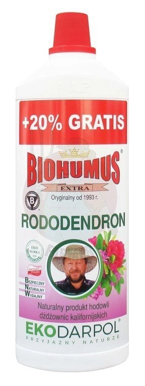 dodatkowo przedłużają okres kwitnienia i stymulują powstawanie pąków kwiatowych. Biohumus Extra Rododendron jest produktem nieprzedawkowalnym, zapewniającym bujny wzrost i intensywne wybarwienie liści i kwiatów.