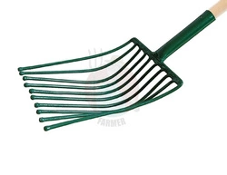 - Widły nadają się do zbioru ziemniaków, buraków lub kamieni, składają się z dziesięciu długich zębów lekko wygiętych zakończonych kulkami. Drewniany trzon zakończony uchwytem typu "T".