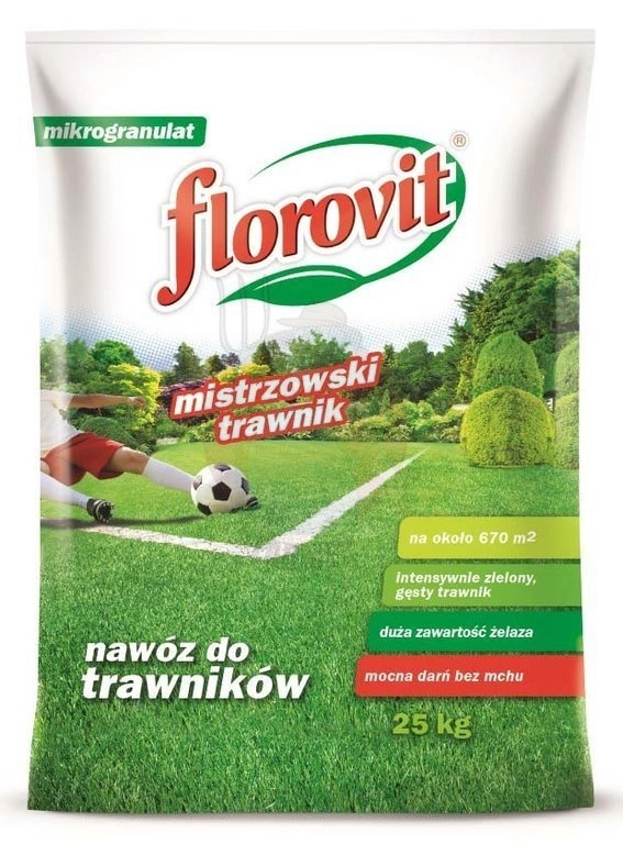 Intensywnie rosnąca trawa, wielokrotnie koszona w ciągu roku, pobiera z gleby duże ilości składników pokarmowych. Dlatego do uzyskania trwałej, zwartej darni i pięknej zieleni traw niezbędne jest ich systematyczne nawożenie od wczesnej wiosny do jesieni. Florovit do trawników Mistrzowski trawnik, dostosowany jest do wymagań pokarmowych wszystkich gatunków traw, szczególnie do trawników ozdobnych i reprezentacyjnych.