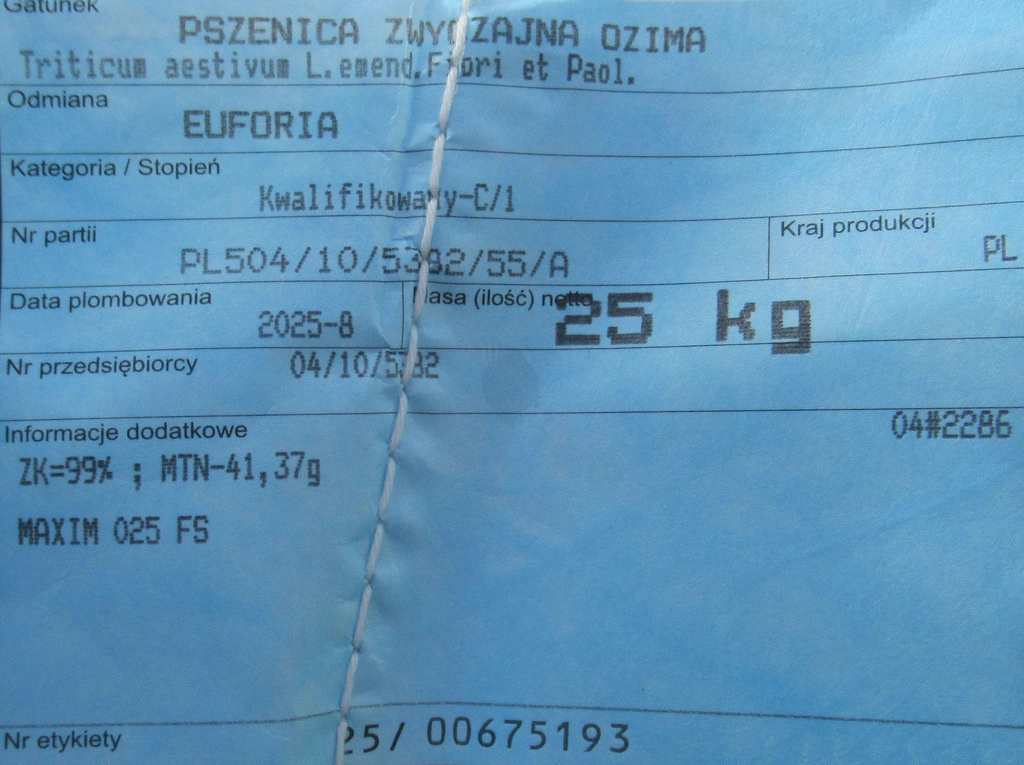 Pszenica ozima Euforia nasiona kwalifikat C1