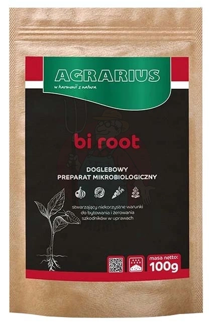 Bi Root to doglebowy preparat bakteryjny oparty na specjalnie wyselekcjonowanych naturalnie występujących w glebie mikroorganizmach z rodzaju Bacillus.. Przyczynia się on do tworzenia niekorzystnych warunków w glebie, które ograniczają występowanie szkodników w uprawach warzyw owoców i roślin rolniczych. Preparat sprzyja naturalnemu ograniczaniu uszkodzeń roślin uprawnych przez szkodniki poprzez zmianę środowiska ich występowania i zimowania w wyniku rozkładu i mineralizacji materii organicznej, która sprzyja ich rozwojowi.