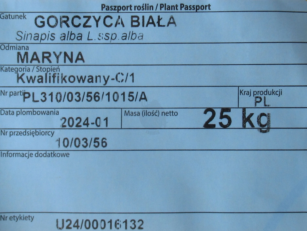 Ważniejsze cechy agrotechniczne gorczycy białej Maryna
