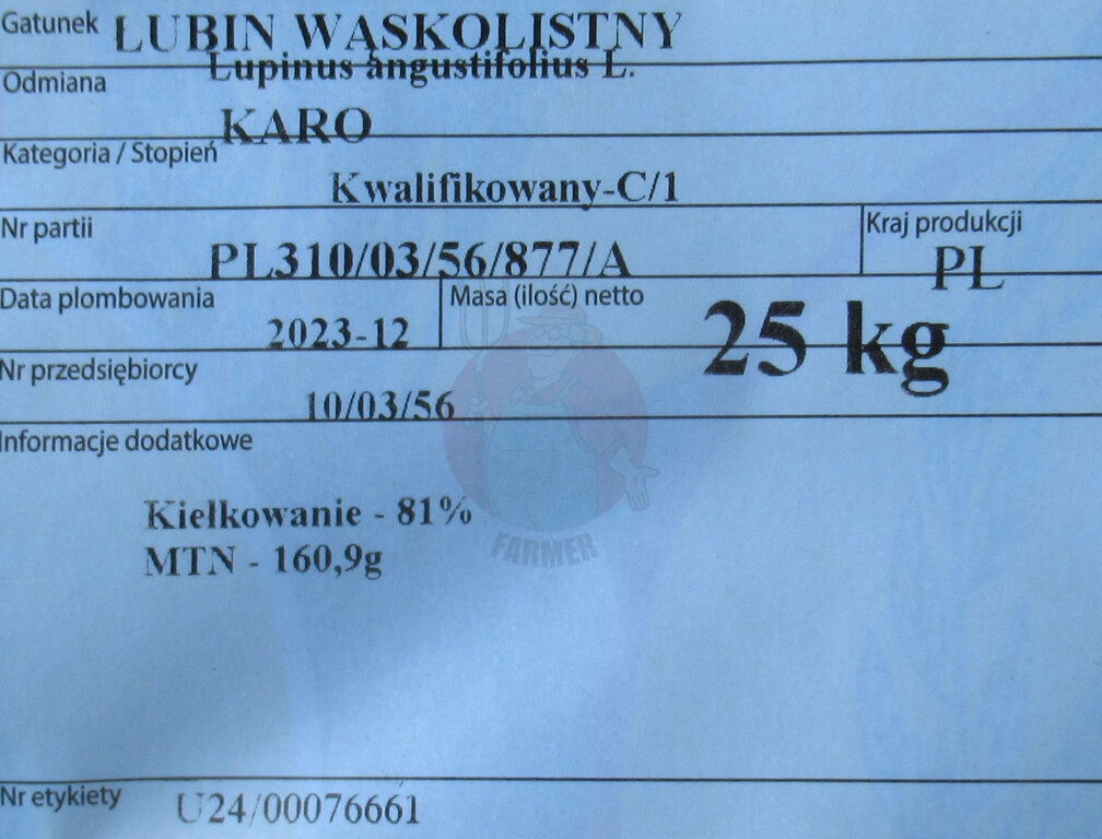 Uprawa łubinu wąskolistnego została opracowana wg zaleceń Poznańskiej Hodowli Roślin oraz Hodowli Roślin Smolice.