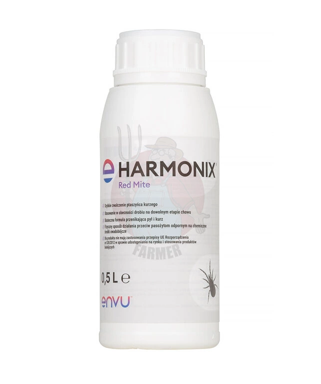 Harmonix® Red Mite to koncentrat rozpuszczalny w wodzie o fizycznym sposobie działania, skuteczny podczas zwalczania ptaszyńca kurzego (Dermanyssus gallinae) do stosowania w pomieszczeniach chowu i hodowli drobiu. Harmonix® Red Mite unieszkodliwia również inne małe owady biegające.