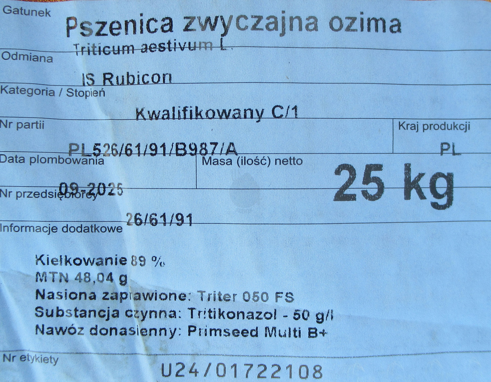 Pszenica ozima IS Rubicon nasiona kwalifikat C1