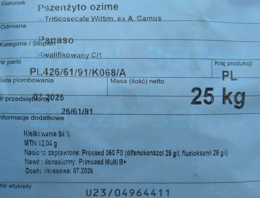 Pszenżyto ozime Panaso nasiona kwalifikat C1