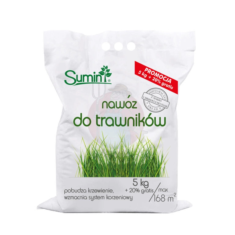 Opakowanie 5 kg wystarcza na około 168 m² trawnika.