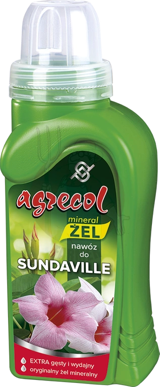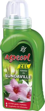 Nawóz do sundaville z serii Mineral żel to płynny nawóz mineralny w postaci żelu, do rozpuszczania w wodzie. Niezbędny w zasilaniu bardzo wymagających sundavilli, z rodzaju Mandevilla (Dipladenia). Zalecany również do stosowania w przypadku upraw w kompozycjach z innymi roślinami balkonowymi i tarasowymi. Żelowa formuła nawozu bardzo łatwo rozpuszcza się w wodzie. Roztwór nawozowy można z powodzeniem stosować do nawożenia roślin uprawianych metodami tradycyjnymi, a także w uprawach hydroponicznych.