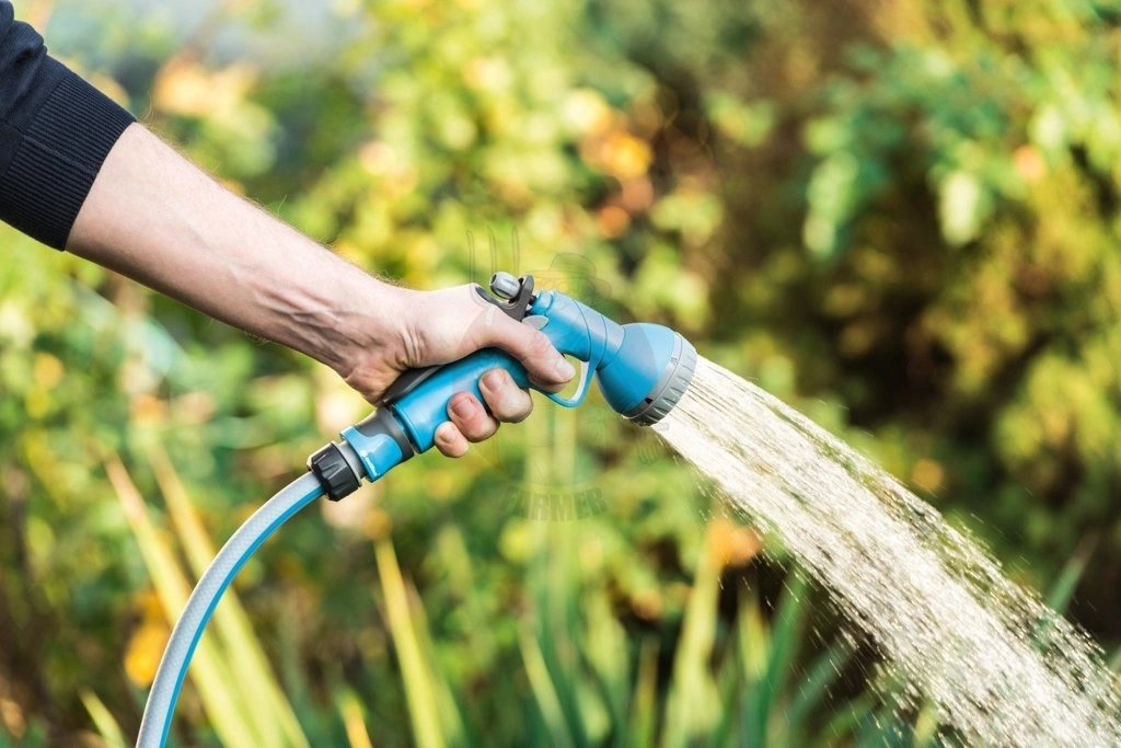 Regulacja przepływu wody6 USTAWIEŃ STRUMIENIA ZRASZANIAZraszacz pistoletowy SHOWER IDEAL posiada 6 różnych ustawień strumienia zraszania, dzięki czemu możliwy jest dobór odpowiedniego względem wykonywanej pracy. Do wyboru dostępne są następujące strumienie: prysznicowy, płaski poziom, mgiełka, prosty, silny punktowy, delikatny punktowy. Zamieszczony na końcu głowicy przycisk umożliwia uruchomienie zraszacza, regulację siły przepływu wody oraz blokadę ustalonego strumienia, która zapewnia wygodę pracy ciągłej. |