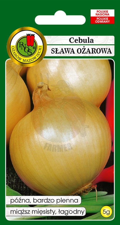 Odmiana późna, tworząca duże, kuliste cebule o masie 150-18g, pokryte żółtą, dobrze przylegającą łuską. Okres wegetacji wynosi 140-150 dni. Miąższ mięsisty, barwy białozielonej, łagodny w smaku. Sława Ożarowa jest bardzo plenna (jej plon wynosi 80-90t/ha. W plonie duży udział stanowią cebule o średnicy powyżej 7cm. Bardzo dobrze przechowuje się do wiosny. Polecana do produkcji towarowej (bezpośrednie zaopatrzenie rynku oraz susz).