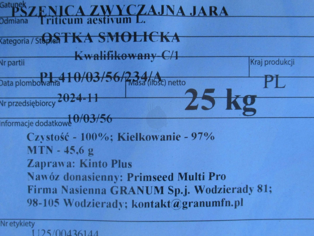 Pszenica jara Ostka Smolicka kwalifikat C1