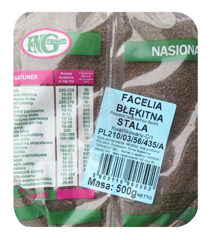 Facelia błękitna Stala jest często uprawiana w międzyplonie ścierniskowym po zbożach. Zalecana norma wysiewu wynosi: